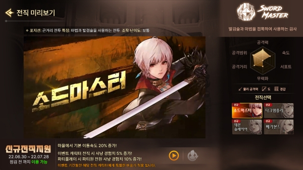 먼저, 소드마스터는 여러 가지 무기를 사용할 수 있는 클래스다. 사용하는 무기에 따라 제국검술 스킬과 무큐 스킬의 특징이 달라진다. ‘던파 모바일’에서는 도 마스터리를 사용하는 물리 공격력 클래스로 구분된다. 여러 기술을 연계하는 순간적인 대미지 딜링에 특화됐으며, 자체 속성 부여가 가능해 아이템 부담이 비교적 낮다.