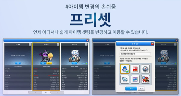 기존에 불편했던 상점은 대대적으로 개편되고 편의 기능 '프리셋'도 추가된다. '프리셋'은 유저가 착용한 아이템 정보를 저장하여 모드, 용도에 따라 착용 아이템을 불러올 수 있는 기능이다. 프리셋은 기본 3개가 제공된다.