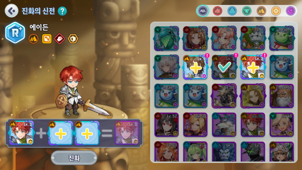 또 레어플러스는 에픽으로 진화할 수 있는데, 같은 로벨 카드가 아니어도 레어플러스라면 재료로 활용해 진화시킬 수 있었다. 그 이후 등급들도 동일한 구조를 가지고 있어서, 카드를 많이 확보한다면 높은 등급으로 성장시킬 수 있다.