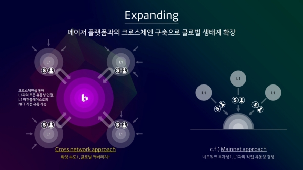우 대표는 크로스체인 구축이 성장이 아닌 팽창을 위한 선택이라고 밝혔다. 보라가 보유한 콘텐츠와 게임을 유저에게 전달(딜리버리)하는 것이 큰 그림이다. 단순한 유저 흡수가 아닌, 시장에 적응한 유저들에게 양질의 콘텐츠를 제공해 독자적인 영역을 구축한다는 전략이다.