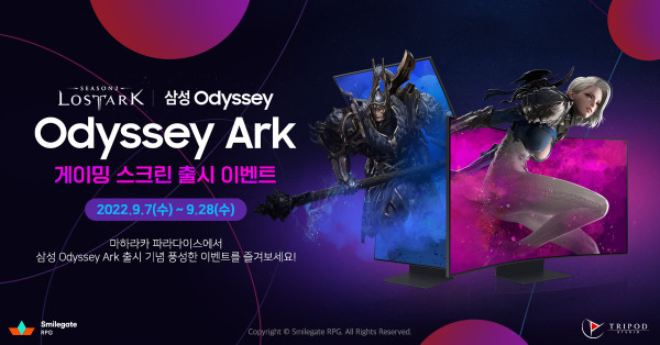스마일게이트 RPG(대표 지원길)의 MMORPG '로스트아크'가 삼성전자와 함께 차세대 게이밍 스크린 ‘오디세이 아크’의 출시를 기념한 풍성한 혜택의 특별 이벤트를 진행한다고 7일(수) 밝혔다.
