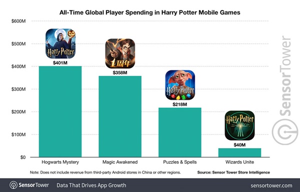 이 중에서 가장 높은 매출을 기록한 게임은 넷마블 자회사 잼시티의 ‘해리포터: 호그와트 미스테리’다. 센서타워의 집계에 따르면, 이 게임은 전 세계에서 누적 매출 4억 달러를 돌파했다. 넷이즈의 ‘해리포터: 깨어난 마법’은 3억 5,800만 달러로 2위에 올랐다. 3위는 2억 1,800만 달러를 벌어들인 ‘해리포터: 퍼즐스 앤 스펠스’다. 나이언틱의 ‘해리포터: 마법사 연합’은 3,960만 달러로 4위다.