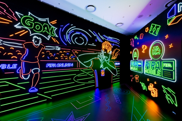 네온 존은 전 벽면을 네온사인으로 디자인해 ‘찰칵 세레머니’를 하는 손흥민 선수와, 게임 로고, 클래스 카드 등 게임의 대표 심볼을 입체적으로 만날 수 있다.