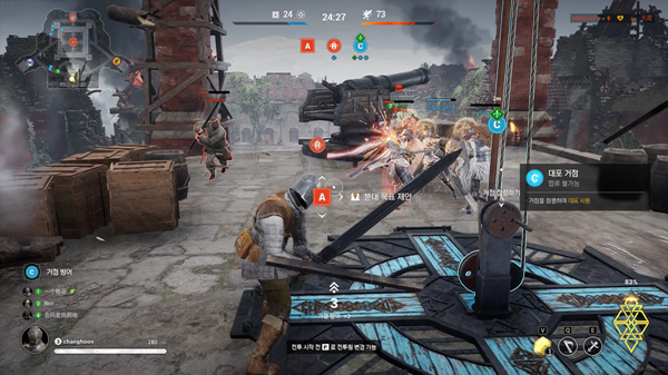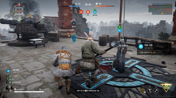 개인적으로는 이런 방식의 게임을 처음 해보기에, 전투에 적응하는 것이 쉽진 않았다. 난전 속에서 방어를 하는 것은 거의 의미가 없었고, 오로지 몰려다니면서 적을 찾아서 공격하는 것에 집중하게 됐다. 이렇게 정신 없이 싸우면서 거점을 뺏고 뺏기는 줄다리기를 하는 긴장감은 괜찮았다. 어디선가 대포가 날아와서 한 방에 내 캐릭터가 사망하기도 한다. 튜토리얼을 진행할 때, 마지막 단계에서 이런 난전도 미리 경험하게 해 주는 것이 어떨까 싶다.