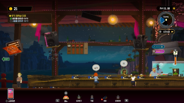 경영은 초밥집을 운영하는 시뮬레이션 게임 형태다. 사냥한 물고기를 조리하고, 손님에게 서비스하면 보상을 얻을 수 있다. 녹차 따르기나 고추냉이 갈기 등 소소한 미니게임이 단순해질 수 있는 반복 작업을 환기하는 장치다. 여기에 클리셰를 깨는 개성을 가진 캐릭터의 매력을 한껏 살려 스토리를 보는 재미까지 살렸다.