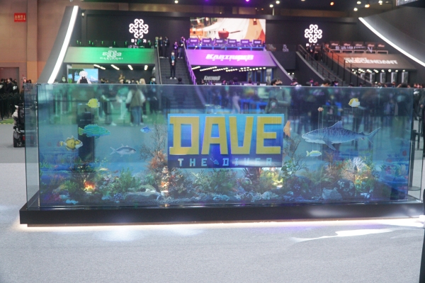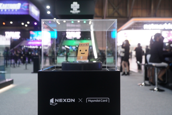 부스 중앙에는 넥슨 캐시 혜택을 받을 수 있는 현대카드 실물이 전시됐다. 부스 가운데에는 글로벌 유저의 관심을 집중시킨 신작 ‘데이브 더 다이브’를 모티브로 한 수족관을 구경할 수 있다.
