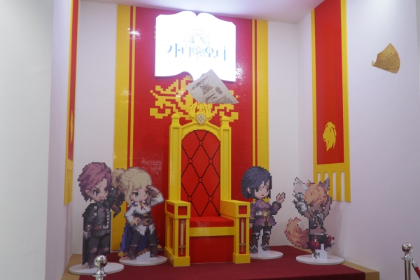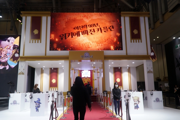카카오게임즈 BTC 부스는 크게 3가지 구역으로 나뉘어 운영된다. 부스 오른쪽에는 ‘가디스오더’를 소개하는 체험존으로 꾸렸다. 해당 공간은 기념사진을 촬영할 수 있는 왕좌와 레드카펫으로 왕궁 분위기를 살렸다. 체험부스 왼쪽에는 코스튬 플레이(코스프레) 모델들의 포토 타임이 진행된다.