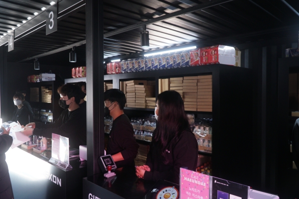 야외 부스는 BTC 체험을 마친 유저를 환송하는 공간으로 꾸며졌다. 체험한 게임으로 제작된 다양한 굿즈로 교환할 수 있다. 열띤 관람으로 지친 체력을 회복할 수 있는 커피와 에너지 음료, 생수도 아이템 박스에 포함됐다.