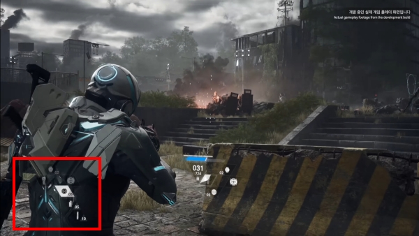 전투 상황에서는 다양한 아이템이 쓰인다. 먼저, 기본 장착한 총기(산탄총, 돌격소총)와 미사일, 회복 아이템, 탐색용 드론 등이다. 이 중 미사일은 사용 횟수가 아닌 재사용 대기시간(쿨타임)이 적용됐다는 점이 흥미롭다. 중간 세이브 포인트로 보이는 비상통신장치 근처로 이동하면 회복 아이템 사용 횟수와 체력이 회복된다. 멀티플레이보다 싱글플레이 캠페인에 가까운 방식이다.
