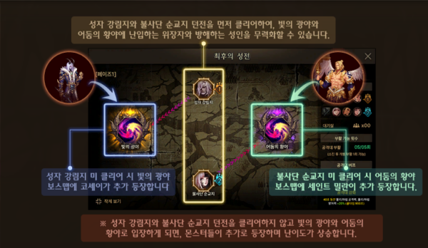 레이드는 3단계로 진행된다. 던전 클리어 순서에 따라 난이도가 달라진다. 일부 던전에서는 주요 NPC를 지키는 기믹이 추가하는 등 원작과 다른 색다른 재미를 경험할 수 있다. 마지막 오즈마 페이즈는 무의 오즈마가 등장하며, 순간적인 대미지 집중 능력을 요구하는 패턴과 다양한 회피 패턴이 적용됐다.