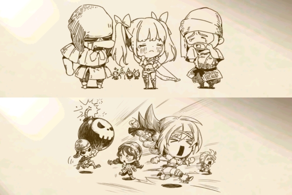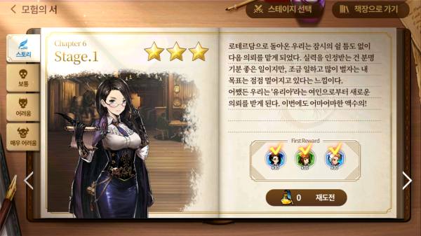 실제로 게임 진행은 책을 읽는 듯한 느낌으로 진행된다. 메인 콘텐츠인 ‘모험의 서’를 선택하면 주요 캐릭터들의 재미있는 스토리가 대화 형태로 이어지고, 대화가 완료되거나 전투에서 승리하면 진행된 내용의 줄거리가 책에 새겨진다. 게임을 플레이하며 책이 완성되는 것이다. 한 챕터가 끝나면 귀여운 삽화를 보여주는 것은 덤이다.