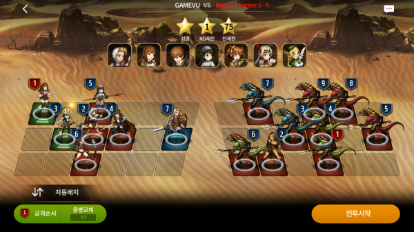 막 획득한 캐릭터는 아무리 별 등급이 높아도 장비를 갖추지 않으면 생명력이 10 이하이기에, 반드시 어느 정도 장비를 갖추고 성장을 시킨 뒤에 전장에 내놔야 한다.