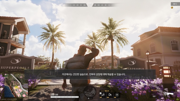 다시 태어난 ‘슈퍼피플 2.0’은 게이머에게 보다 친숙한 모습으로 다가온다. 기본적인 조작법인 1인칭 슈팅(FPS)을 따른다. 규칙과 진행도 슈팅 기반 배틀로얄 장르와 비슷해 플레이 방법을 쉽게 익힐 수 있다. 기본 튜토리얼은 게임의 핵심인 스킬 사용을 알려주는 데 초점이 맞춰졌다. 물론, AI 대전으로 진행되는 실전 튜토리얼로 스킬 사용법을 익힐 수도 있다.