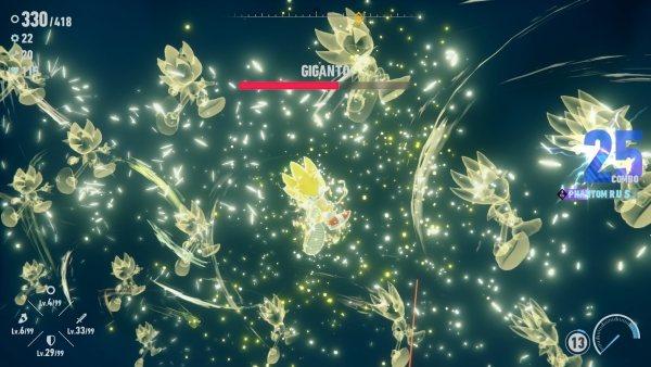 이런 아쉬움은 ‘소닉 프론티어’에서 완전히 극복한 모습이다. 스킬 시스템과 회피, 패리, 카운터, 필살기 등 다양한 모션으로 풍부한 전투를 즐길 수 있기 때문이다. 거대한 몬스터와 싸울 때는 슈퍼 소닉으로 변신하며, 공중전을 즐길 수 있다. 버튼 액션과 패링을 이용한 타이밍 싸움에는 고유 모션과 연출이 추가돼 보는 재미도 쏠쏠하다.