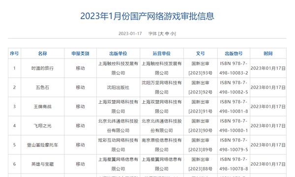 중국 정부가 2023년 첫 게임 판호를 발급했다. 텐센트의 ‘백야극광’과 미호요의 ‘붕괴: 스타레일’이 포함됐다. 텐센트가 3개의 판호를 받은 것을 고려하면, 게임 산업에 대한 규제 분위기가 다소 완화된 것으로 보인다. 게임 제목이나 중국 퍼블리셔가 변경된 것으로 인해 판호를 다시 받은 경우도 있다.