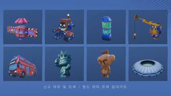 신규 트랙도 추가된다. 월드 테마의 오리지널 스피드 트랙 1종과 버섯동굴로 추정되는 포레스트 테마의 아이템 트랙 1종이 업데이트된다. 또 초보 레이서 안내 기능과 커스텀 게임 내 랜덤 트랙 기능이 추가된다.