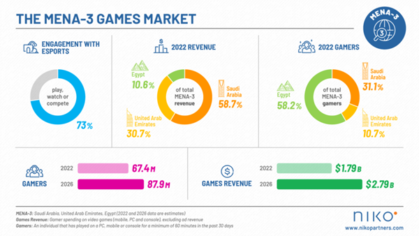 시장 조사 업체 니코파트너스는 지난 2022년부터 중동과 북아프리카(MENA) 게임 시장에 대한 보고서를 발행하기 시작했다. 최근 공개된 두 번째 보고서에서는 오는 2026년까지의 시장 전망이 담겨있다.