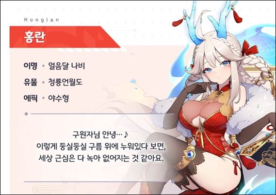 지난 16일 카카오게임즈의 모바일 수집형 RPG ‘에버소울’에 신규 야수형 정령 ‘홍란’이 추가됐다. ‘홍란’은 업데이트 로드맵 공개 당시부터 푸른 용을 연상시키는 독특한 개성과 아름다운 디자인으로 이용자의 주목을 받았다.