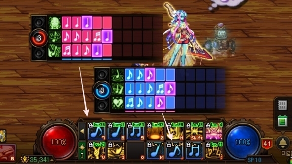 주력 공격 스킬이 재사용 대기 중일 때 악보 연주로 부족한 대미지를 채울 수 있다는 점도 긍정적이다. 육성 단계에서는 자원 소비가 적은 해피한 기분, 기분전환만으로 빠른 사냥이 가능했다. 이에 맞춰 피해 증가와 생존능력을 고루 갖춘 수면 버프 세팅이 잘 어울린다는 평가를 받고 있다. 필자 역시 수면 세팅을 기본으로, 생존력을 높여주는 뚜렷해지는 소멸의 사념(뚜소사) 반지를 추가하는 방법을 선택했다.