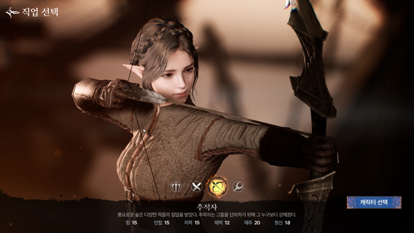 다음으로 캐릭터를 만들게 된다. 본 기자는 엘프 종족의 '추적자'(궁수)를 선택했다. 출시 직후에는 유저가 많이 몰리는 시점이기에, 원활한 사냥을 위해서는 원거리 공격 직업을 하는 것이 좋기 때문이다. 캐릭터 성장 구조는 모바일 MMORPG의 기본 공식을 따랐다. 확률형 아이템으로 직업을 뽑고, 상점에서 직업 기술을 구매하는 방식이다. 힘, 민첩 같은 몇몇 능력치는 유저가 원하는 대로 분배할 수 있다.