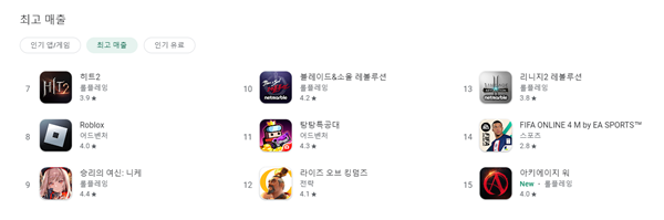 매출 지표도 괜찮았다. 출시 5시간 만에 앱스토어 매출 1위에 올랐고, 이후에는 구글플레이 매출 15위에 이름을 올렸다. MMORPG 경쟁이 치열한 한국 모바일 게임 시장에서 이 정도면 성공적인 첫 날을 보냈다고 볼 수 있다. 그리고 23일 오후 까지도 이 순위를 유지하고 있다. 이런 분위기에서 첫 주말이 지나면, 구글플레이 매출 순위는 더 상승할 것으로 보인다.