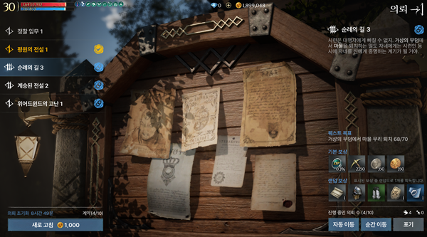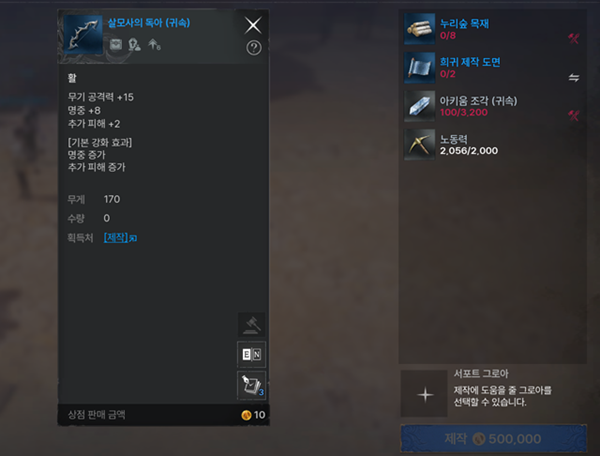 장비 제작에 필요한 재료도 중요하다. 메인 퀘스트만 진행해서는 장비 제작에 필요한 재료가 모이질 않는다. 각종 재료는 각 마을의 의뢰 퀘스트를 10번씩 완료하면 된다. 그리고 메인 퀘스트를 진행하며 얻은 의뢰서를 사용해서도 다양한 재료를 모을 수 있다. 이렇게 해도 재료가 부족하면 거래소에서 구매해야 한다. 거래소에서는 최하급 재료를 구해서 직접 제작하는 것이 좋다. 제작을 하면 가끔 대성공이 뜨며 결과물이 더 나올 때가 있기 때문이다.