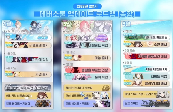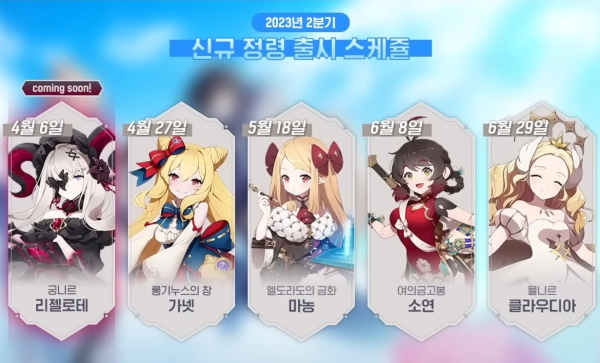 그에 따라 4월 6일에는 최초의 악마형 정령 픽업인 리젤로테, 4월 27일에는 불사형 정령 가넷, 5월 18일에는 요정형 정령 마농, 6월 8일에는 야수형 정령 소연, 6월 29일에는 천사형 정령 클라우디아가 등장한다.