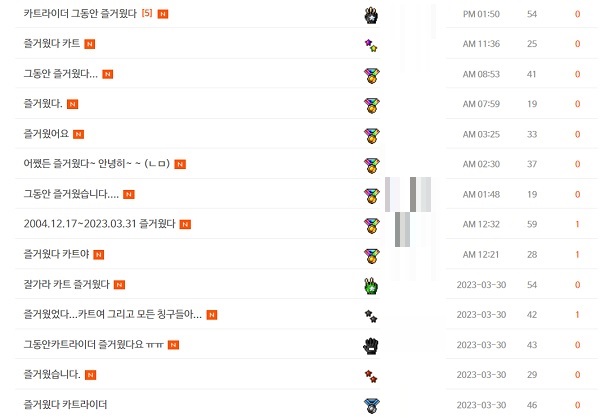서비스 종료 시간이 다가오면서 유저들은 게시판을 통해 서비스 종료를 아쉬워하며 추억을 나눴다. 특히 어렸을 때부터 시작해 성인이 되기까지 즐겼던 다양한 이야기를 게시판에 남기며 추억을 공유했다. 종료되는 시점에 접속해 기념 사진을 찍자고 제의하는 유저도 있었다.