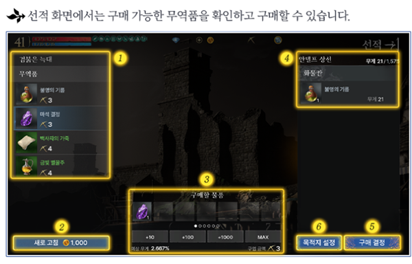 이렇게 모은 무역 코인으로는 컬렉션 아이템을 구매할 수 있다. 다만, 컬렉션 아이템을 구매하려면 굉장히 많은 무역 코인이 필요하다. 현재 쓸만한 아이템으로는 ‘장신구 강화 주문서’(1,700 무역 코인)가 있다. ‘장신구 강화 주문서’는 최근에 신규 콜렉션이 출시되면서 가격이 많이 상승했다. 즉, 매일 무역 콘텐츠를 꾸준히 돌려주기만 해도 ‘장신구 강화 주문서’를 수급해서 다이아를 많이 아낄 수 있게 된다.