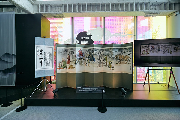 2층에는 수묵화로 유명한 신영훈 작가의 ‘아침의 나라’ 병풍 8첩이 있다. 게임에 등장하는 두억시니, 도깨비, 구미호, 돌쇠 등을 수묵화로 그려냈다.