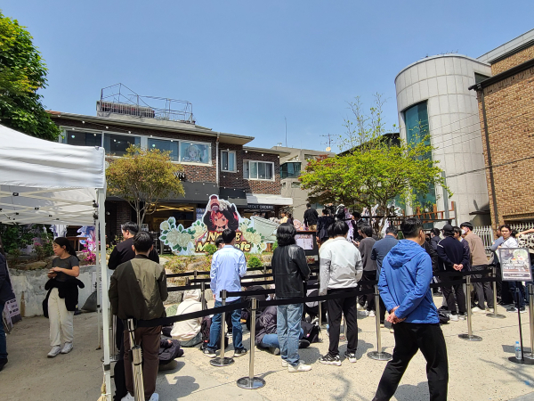 카페 방문을 위해 유저들은 새벽에 줄을 서는 진풍경이 펼쳐졌으며, 혼잡을 방지하기 위해 주최 측은 대기표를 발행해 시간대별로 입장을 시키며 운영하고 있다. 현장의 모습을 사진으로 담았다.