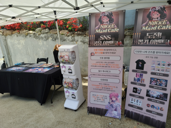 입장 전 대기하는 유저들을 위한 이벤트 참여 공간과 뽑기를 통해 얻을 수 있는 경품들도 전시됐다.
