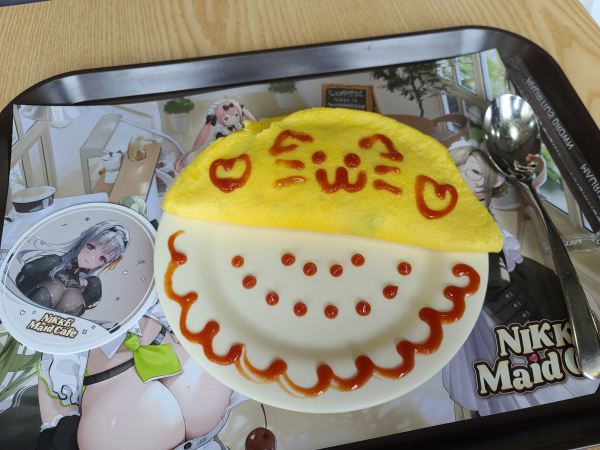 2층에 올라가 자리를 잡으면 세 명의 메이드가 다가와 이야기를 나누고, 케첩으로 직접 오므라이스에 토끼 모양을 그려준다.