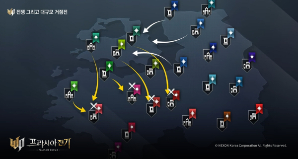 ‘프라시아 전기’ 속 모든 거점은 최종 주인이 정해져 있지 않고, 언제든지 그 자리는 바뀔 수 있다. 현재 프라시아 세계에서는 매일같이 뺏고 빼앗기는 각축
