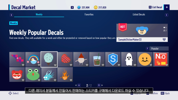 리버리 시스템도 확장된다. 바로 스티커 마켓 추가다. 유저가 제작한 스티커를 500 루찌를 사용해 사고팔 수 있게 된다. 그리고 판매된 루찌 금액에서 수수료를 뺀 나머지를 제작 유저에게 지급된다.
