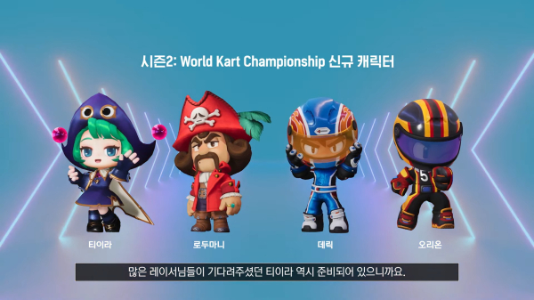 신규 캐릭터들도 등장한다. WKC 최다 우승 경험을 가진 데릭과 럭비의 런닝백 출신의 레이서인 오리온, 원작에서 유명한 해적선장 로두마니, 그리고 동화나라 프레티온의 티이라 등 4명이다. 특히 티이라는 새롭고 더 이쁘게 만들기 위해 노력했다고 한다.