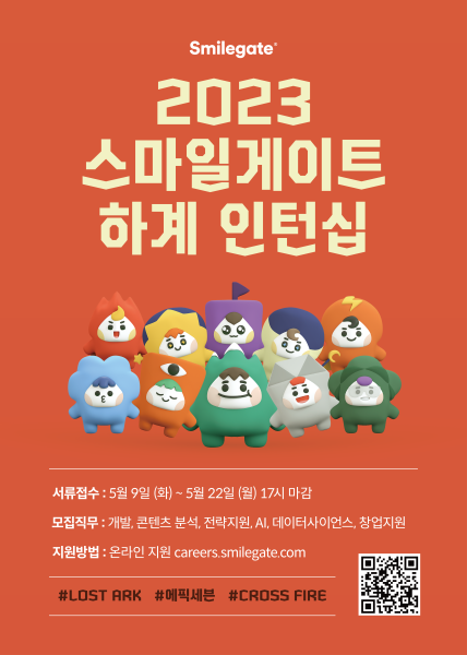 스마일게이트 그룹은 2023 하계 인턴십 채용을 시작한다고 9일 (화) 밝혔다.
