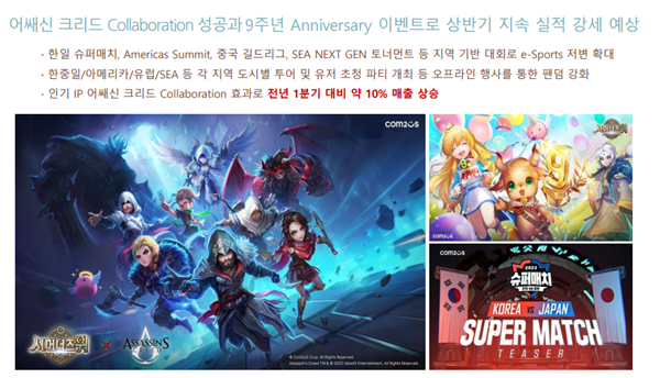 컴투스는 2023년 1분기에 역대 최대 1분기 매출 기록을 달성했다. 9주년을 맞이한 ‘서머너즈 워’는 전 세계 주요 국가에서 장기 흥행 중이다. 지난 3월에 글로벌 버전이 출시된 ‘서머너즈 워: 크로니클’은 동남아시아와 유럽에서 좋은 성과를 거두며 누적 매출 500억 원을 돌파했다.