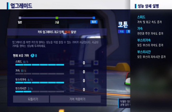 또한 업그레이드 메뉴에서 각 성능이 무엇을 의미하는지 안내문구가 추가된다. 그리고 파티 환경에선 파티원 모두가 준비 완료 상태일 때 준비 요청 버튼이 비활성화되어 파티원들도 준비 상태를 알아보기 쉽게 변경된다.