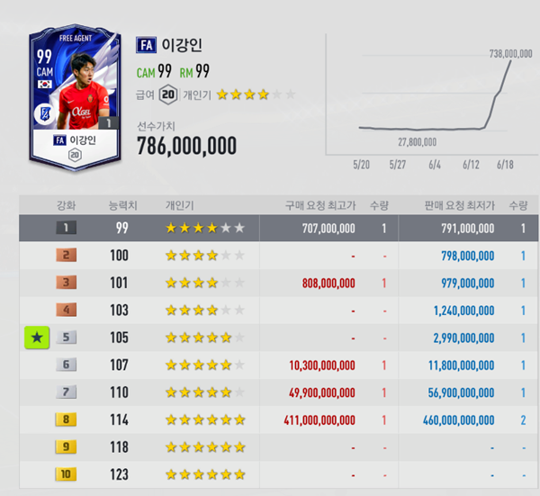이강인 선수가 파리 생제르맹(PSG)으로 이적하는 것이 유력하다는 이야기가 연이어 나오고 있다. 그러자 넥슨의 축구 게임 ‘피파온라인4’에서도 이강인 선수의 가격이 급등했다.