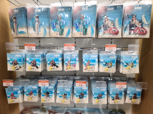 카페를 나오면 이번 여름 업데이트 캐릭터가 반영된 신상 굿즈들을 만날 수 있었다. 여름 일러스트들로 구성된 아크릴 스탠드와 마우스 장패드, 뱃지와 엽서북들도 있었고, 북마크와 노트, 인덱스 홀더 등 다양한 제품들을 만날 수 있었다.