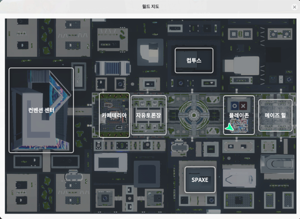 위에서 언급한 컴투스 본사도 하나의 스페이스였다. 그래서 컴투스 건물 자체에 입장은 가능하지만 회사 자체의 스페이스로 이동할 수 있었기에 입장은 불가능했다. 실제 회사와 똑같다고 보면 될 것이다. 그리고 컨벤션센터는 아직 전시가 시작되지 않은 만큼 입장은 불가능했다.