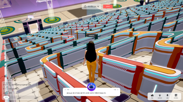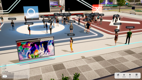 그리고 플레이존에는 보드게임과 OX 게임 등을 즐길 수 있는 스테이지가 준비되어 있었다. 하지만 다른 용도로도 활용이 가능하다. 메타버스는 유저들이 직접 재미를 찾아갈 수 있는 장점이 있는데, 실제로 유저들은 음악퀴즈를 즐기거나 DJ처럼 신청곡을 받아 노래를 소개하는 모습도 볼 수 있었다.