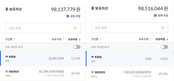 이로써 장현국 대표는 지금까지 12억 7,559만 403원으로 총 868,965 위믹스를 매입했다. 이 중에서 130,501 위믹스는 코인원 거래소 지갑에 있고, 38만개는 원더 스테이킹에 참여하고 있다. 나머지 358,460 위믹스는 위믹스 월렛에 있다.