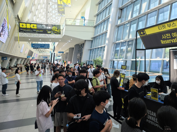 폭염경보가 발효되어 강렬한 햇살과 높은 온도를 기록 중인 벡스코 현장이지만, 행사장 앞에서는 입장을 위해 줄을 서는 모습이 계속 이어졌다.