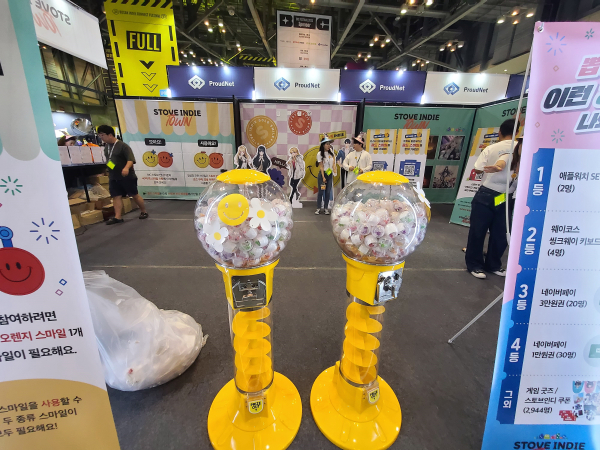 행사장 곳곳에 있는 스토브인디 지원 프로그램 관련 개발사의 게임을 즐기고 스마일 코인을 획득할 수 있으며, 모은 수량에 따라 다양한 기념품을 획득할 수 있었다.