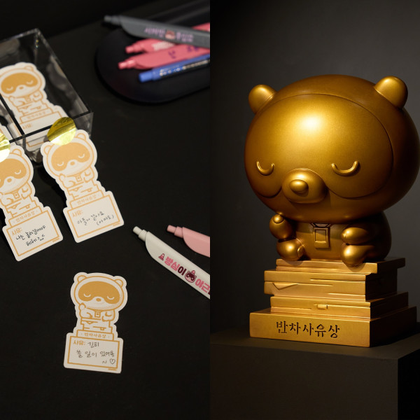방문객은 각종 컬래보레이션 제품도 만나볼 수 있다. 전시회 관람한 후 셀프 포토 스튜디오 ‘인생네컷’ 부스에서 무료로 도구리 포토프레임이 적용된 사진 촬영이 가능하다. 매주 금, 토, 일요일에는 롯데웰푸드와 협업해 제작한 ‘와’, ‘스크류바’ 아이스크림도 받을 수 있다.