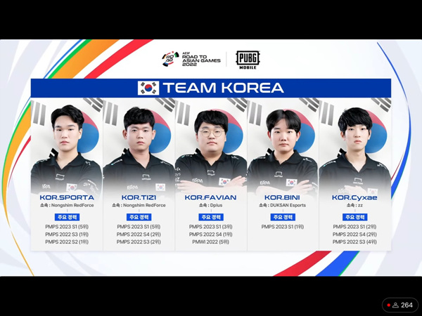 항저우 아시안 게임 정식 종목으로 선정된 크래프톤의 ‘배틀그라운드 모바일’ 예선 경기가 28일 진행됐다. 한국 대표팀은 예선에서 C조 1위로 16강에 진출했다. 이외에 홍콩, 대만, 인도네시아, 일본, 베트남, 사우디아라비아가 예선을 통해 16강에 진출했다. 중국을 비롯해서 아시안 게임 사전 대회에서 조 1위를 했던 국가는 16강부터 경기를 치른다.