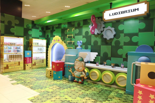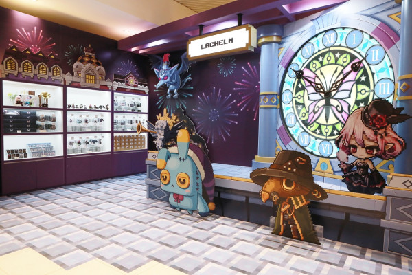 장난감 공장을 모티브로 한 ‘루디브리엄’은 움직이는 컨베이어 벨트 디자인의 조형물에 굿즈를 전시해 게임 속 장난감 생산라인을 그대로 재현했다. ‘레헬른’ 공간은 보라색 톤을 바탕으로 ‘레헬른’에 등장하는 ‘악몽의 시계탑’과 군단장 ‘루시드’, ‘꿈속의 헝겊 인형’ NPC 조형물을 배치해 몽환적인 마을의 분위기를 연출했다. 또한 공항 입국장 배경의 입장 게이트와 ‘메이플스토리’ 몬스터 조형물이 전시된 대기존 등으로 디테일을 더했다.