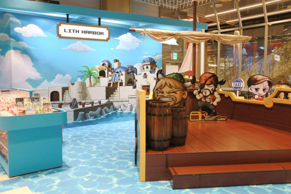 여의도 ‘더현대 서울’ 지하 1층에 마련된 이번 팝업스토어에는 ‘메이플스토리’ 인기 마을 ‘리스항구’, ‘헤네시스’, ‘루디브리엄’, ‘레헬른’으로 꾸며진 공간과 250여 개 이상의 다채로운 상품들이 전시됐다. ‘리스항구’는 푸른 바다에 떠있는 갑판 디자인의 선상 조형물 위에서 시원한 리스항구의 경치를 바라볼 수 있는 공간으로 구성됐으며, 주황버섯 집 디자인의 ‘헤네시스’ 콘셉트 존은 주황버섯 조형물과 도트아트 소품 등으로 꾸며져 몰입감을 높였다.